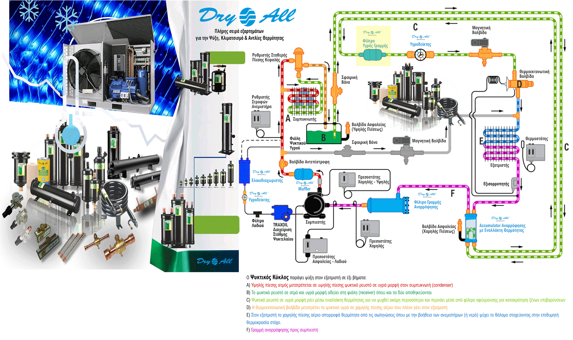 To ερμητικό φίλτρο-αφυγραντής FDB της ALCO σε συμπαγή μορφή κόκκων χρησιμοποιείται στη γραμμή υγρού.