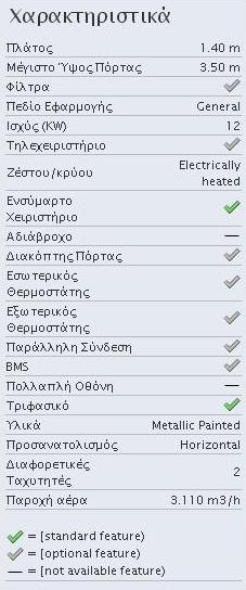 ΑΕΡΟΚΟΥΡΤΙΝΑ ΚΕΗ - 35, ΘΕΡΜΑΙΝΟΜΕΝΗ, (Θερμική Ισχύς 12 ή 15 kW), ΠΛΑΤΟΣ ΠΟΡΤΑΣ 1.40m, ΜΕΣΗΣ ΠΑΡΟΧΗΣ (max 3.50m ΥΨΟΣ ΠΟΡΤΑΣ) "OLEFINI"