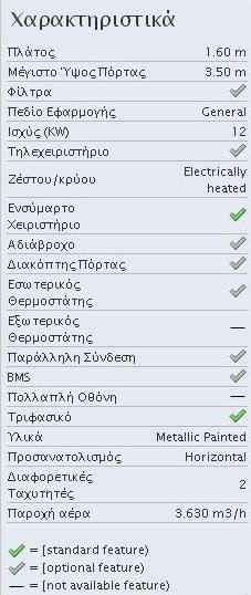 ΑΕΡΟΚΟΥΡΤΙΝΑ ΚΕΗ - 36, ΘΕΡΜΑΙΝΟΜΕΝΗ, (Θερμική Ισχύς 12 ή 15 kW), ΠΛΑΤΟΣ ΠΟΡΤΑΣ 1.60m, ΜΕΣΗΣ ΠΑΡΟΧΗΣ (max 3.50m ΥΨΟΣ ΠΟΡΤΑΣ) "OLEFINI"